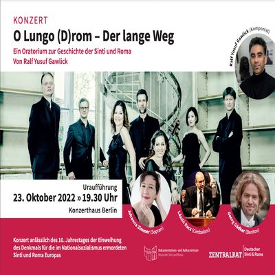 O Lungo Drom was the musical centerpiece of an international conference entitled Commemoration of the Holocaust against the Sinti and Roma ~ Current developments and challenges sponsored by the Central Council of German Sinti and Roma organized for the 10th anniversary of the inauguration of the Memorial to the Sinti and Roma Victims of National Socialism. Keynote speakers included Frank-Walter Steinmeier, President of the Federal Republic of Germany and the oratorio's dedicatee Romani Rose, Chairman of the Central Council of German Sinti and Roma.
